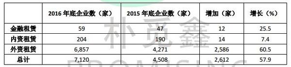 2016年全國融資租賃企業(yè)發(fā)展概況