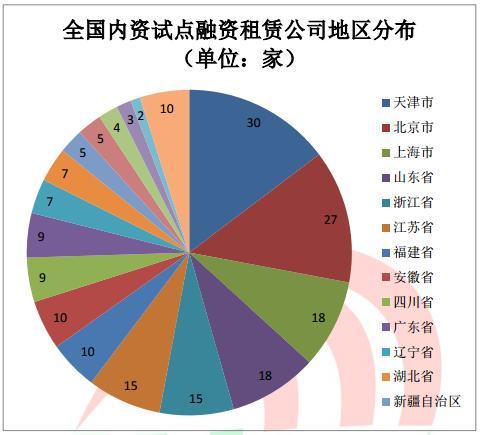 全國內(nèi)資試點融資租賃公司地區(qū)分布