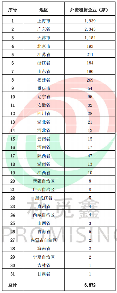 據(jù)統(tǒng)計,截至2016年底全國共有6872家外資融資租賃公司,分布在全國31個省、市、區(qū)。其中廣東省最多有2343家。
