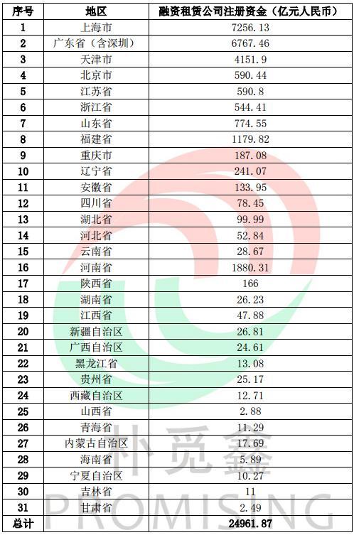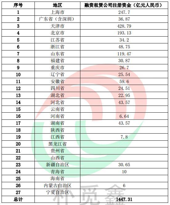 注:資租賃企業(yè)注冊資金按1:6.9的平均匯率折算為人民幣
