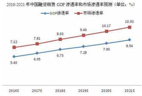 融資租賃市場滲透率是衡量融資租賃業(yè)發(fā)展程度的統(tǒng)計指標,主要有"GDP滲透率"和"市場滲透率"兩種統(tǒng)計方法。GDP滲透率主要以融資租賃交易量與當(dāng)年GDP的比例為參考標準,市場滲透率在則可用融資租賃交易量與當(dāng)年固定資產(chǎn)投資額的比例為參考標準。