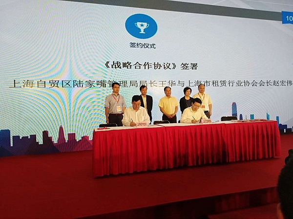 論壇上,上海市租賃行業(yè)協(xié)會與上海自貿(mào)區(qū)陸家嘴管理局等單位簽署合作協(xié)議。